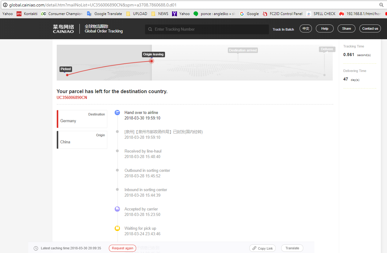 Arrived destination region country
