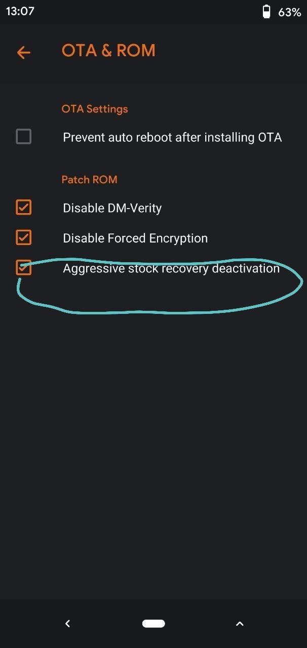 If you don't want Arrow Recovery then you can enable "Aggressive Stock Recovery deactivation" option from orangefox recovery settings shown below.. so recovery will not get replaced