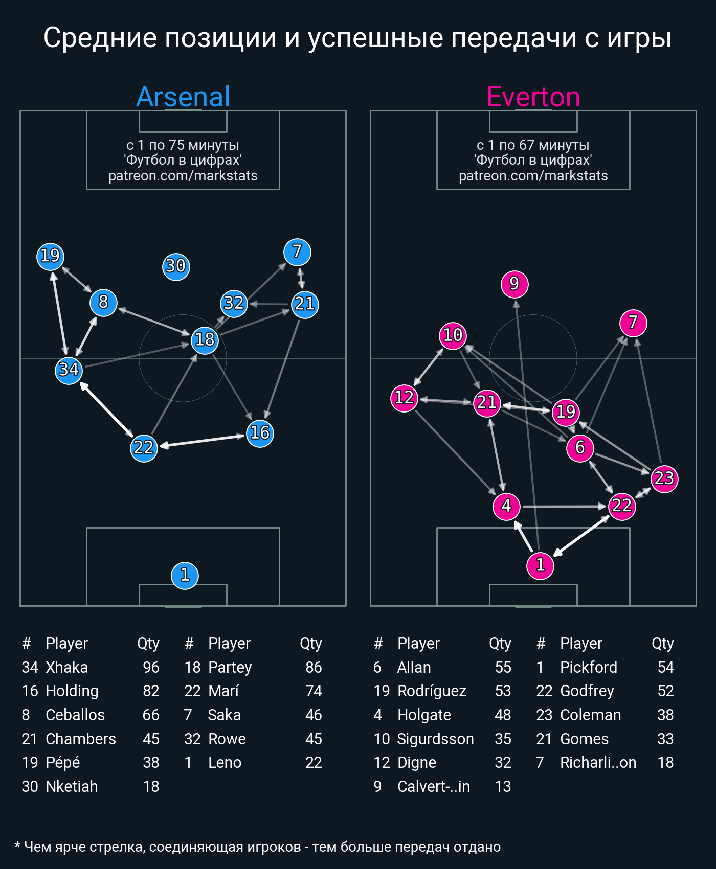 Футбол в цифрахСтатистика матча Arsenal - Everton