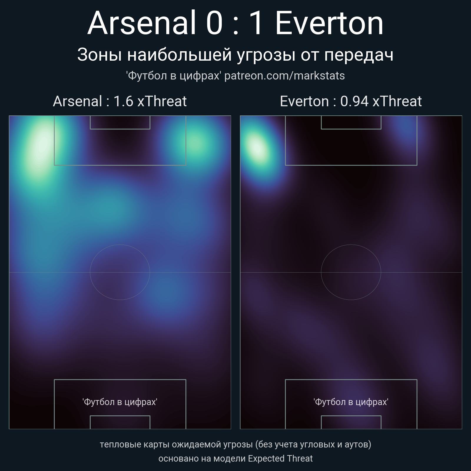 ▪ xThreat без учета угловых: 1.6 - 0.94