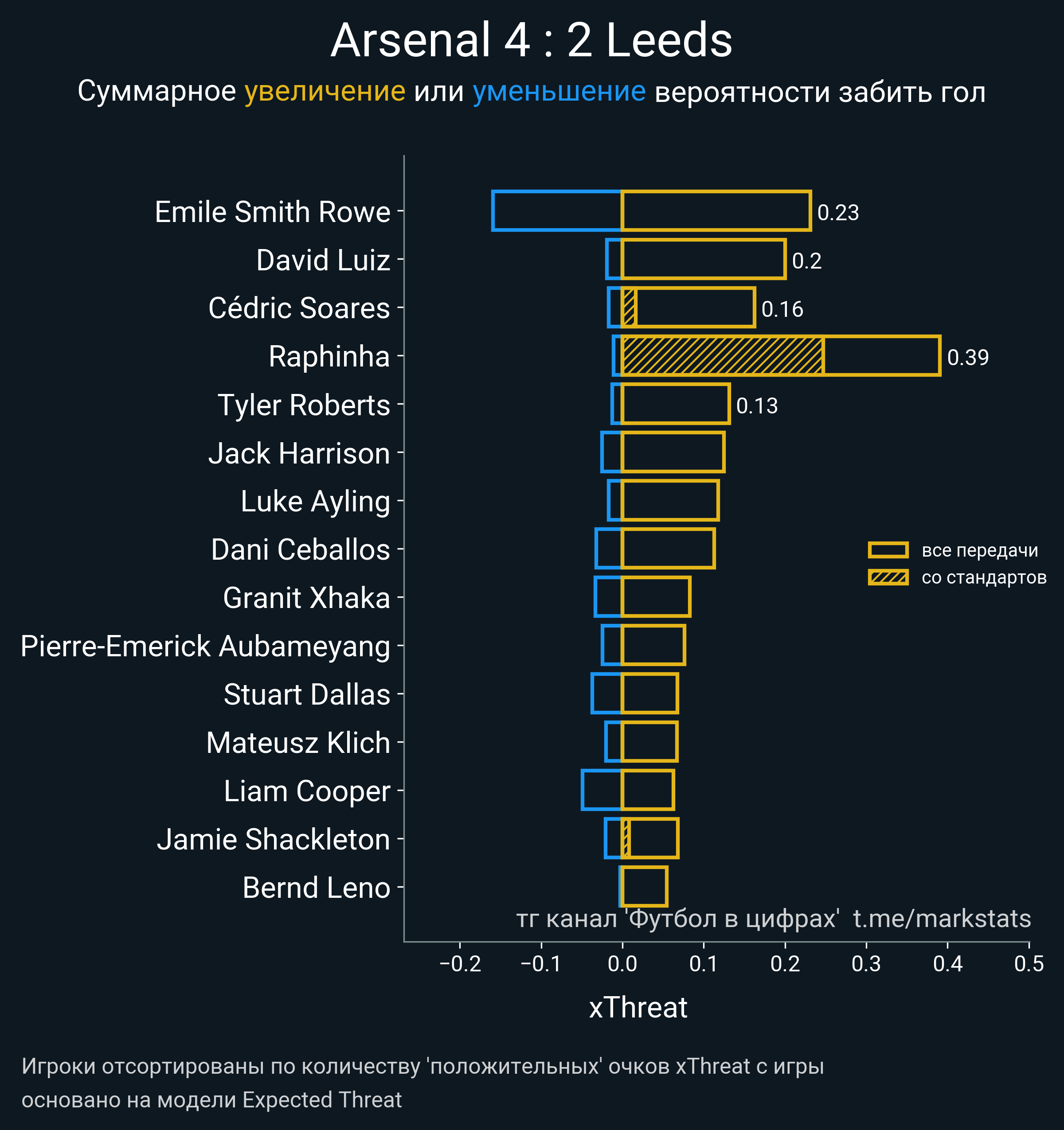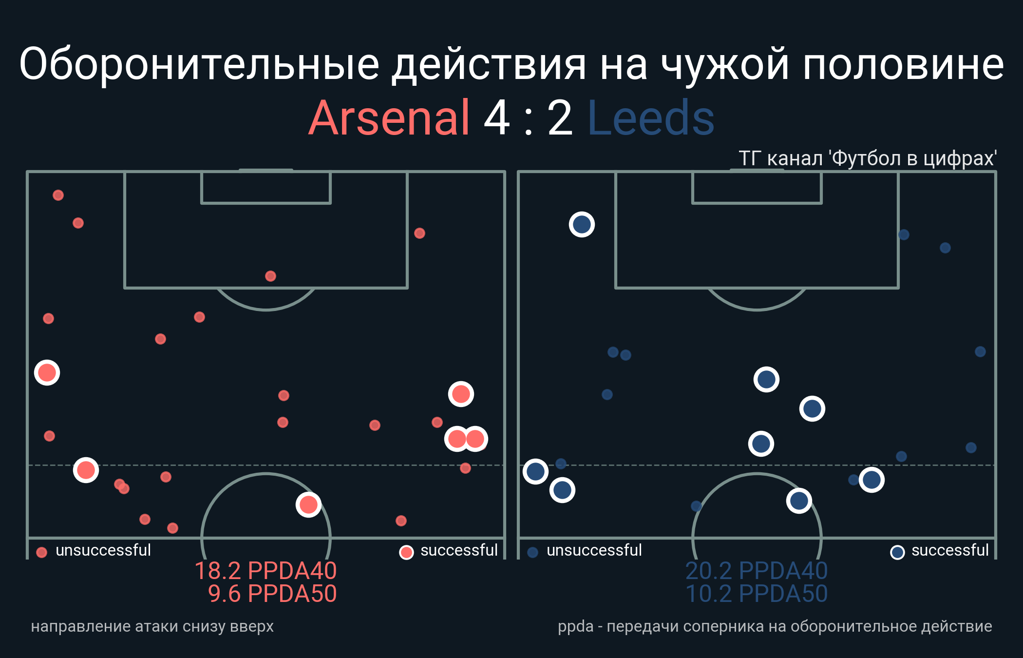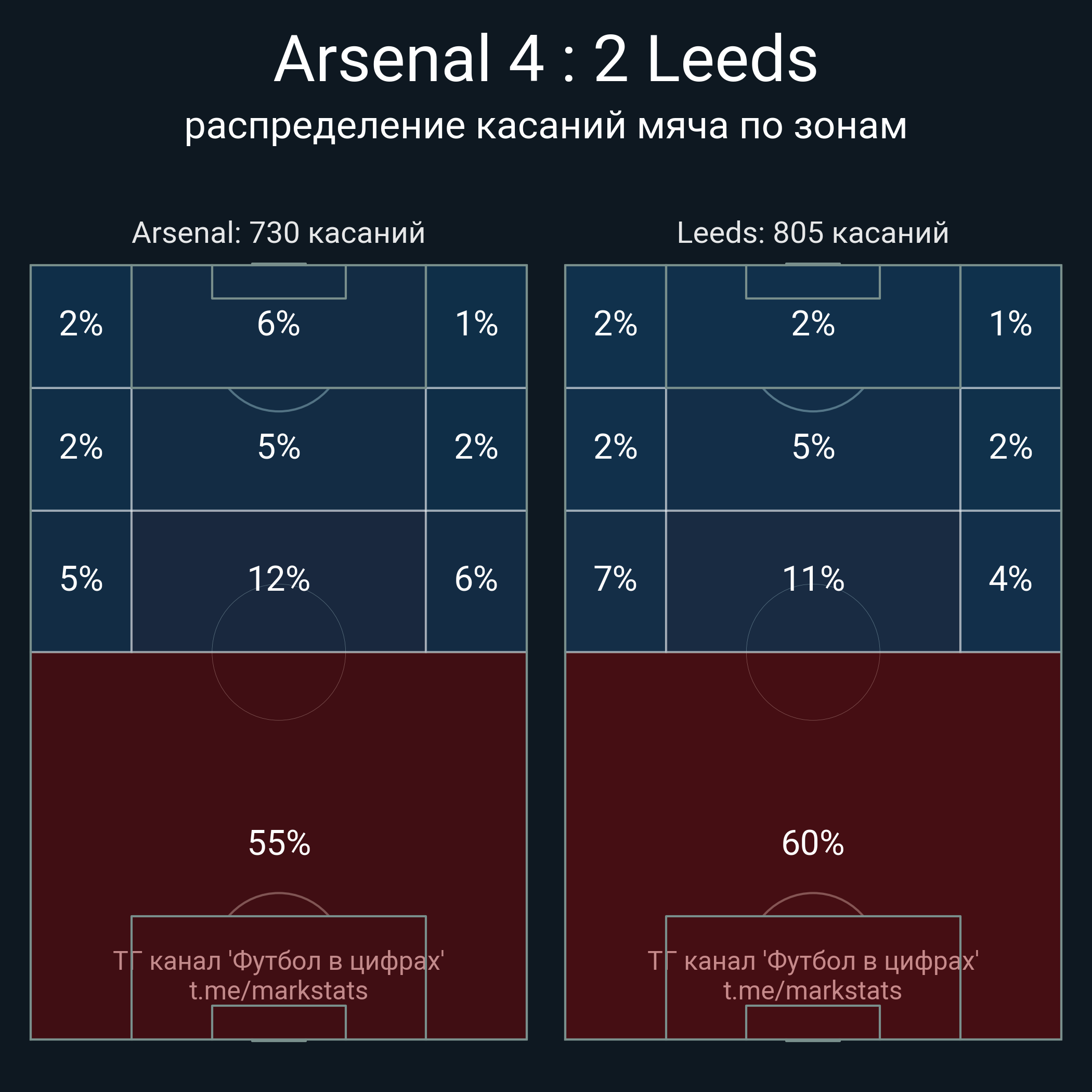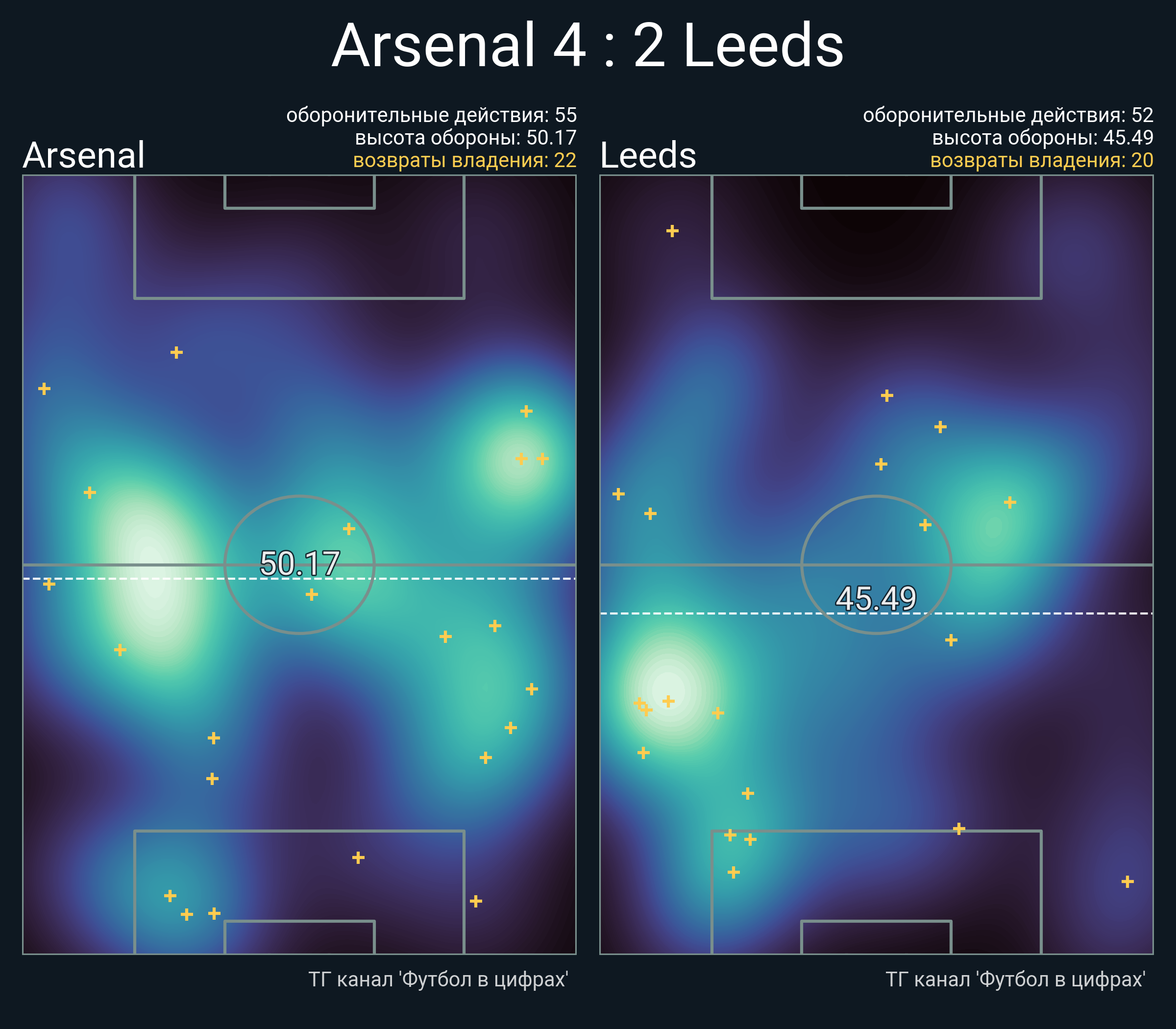 Футбол в цифрахСтатистика матча Arsenal - Leeds