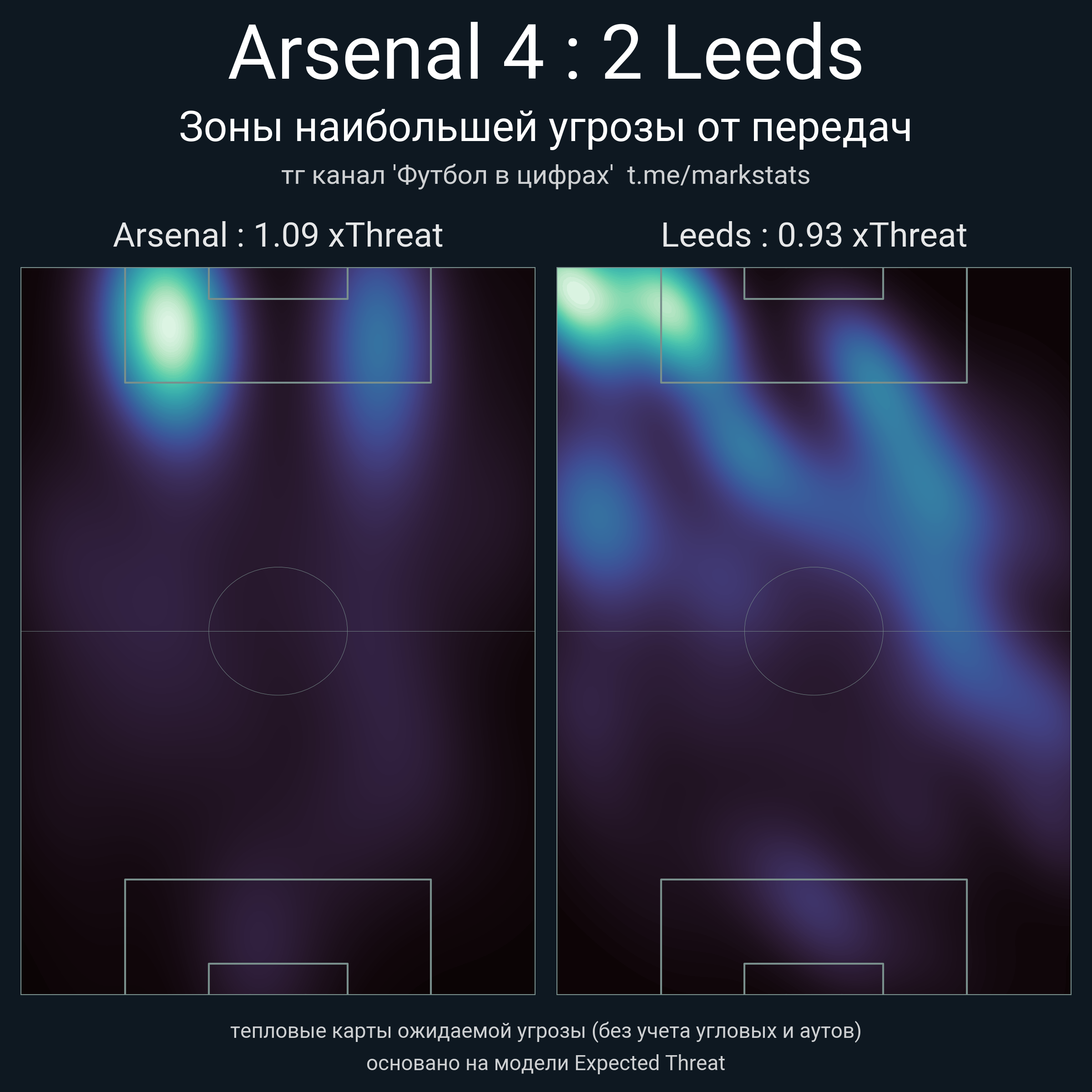 ▪ xThreat без учета угловых: 1.09 - 0.93