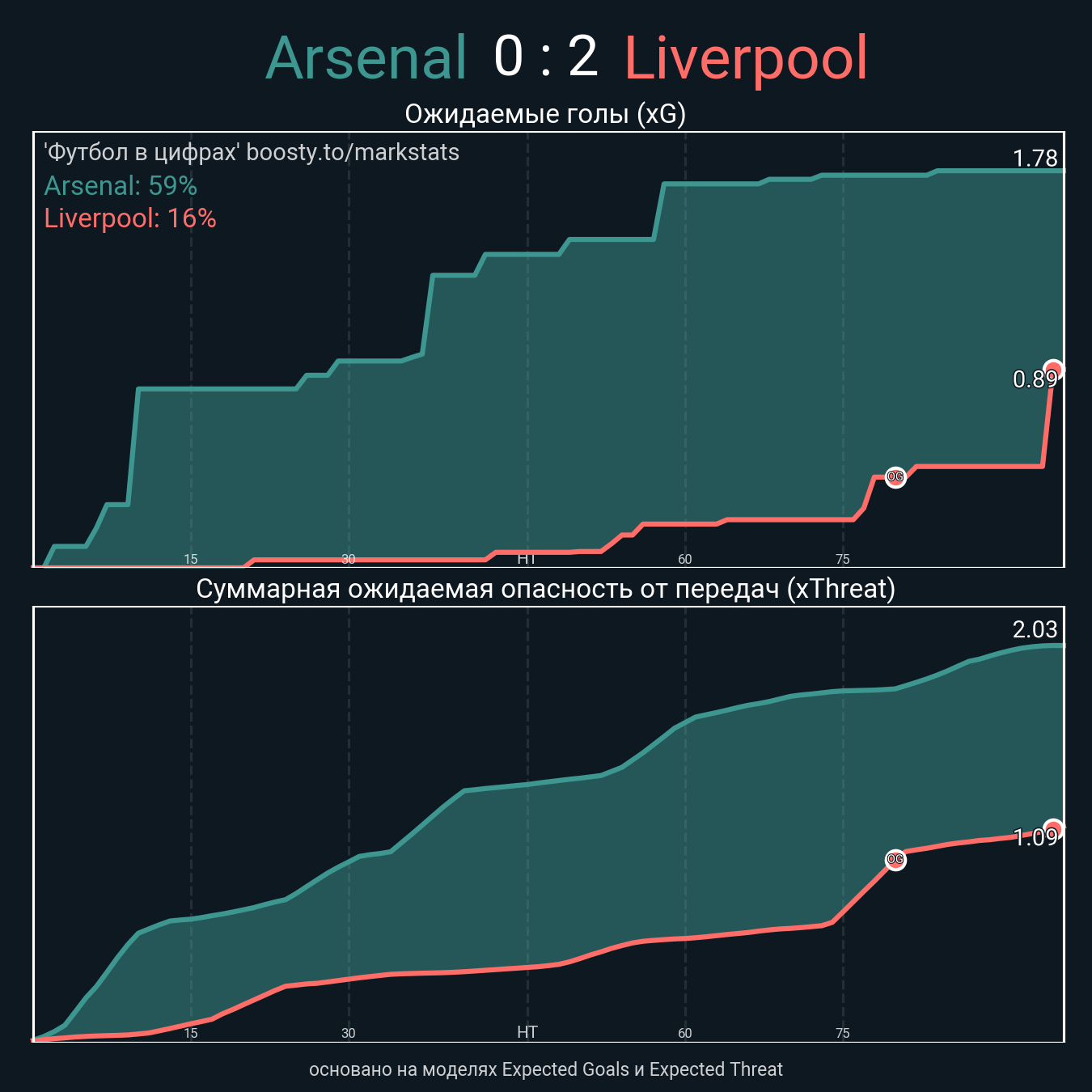 Ожидаемые голы (NPxG): 1.78 - 0.89