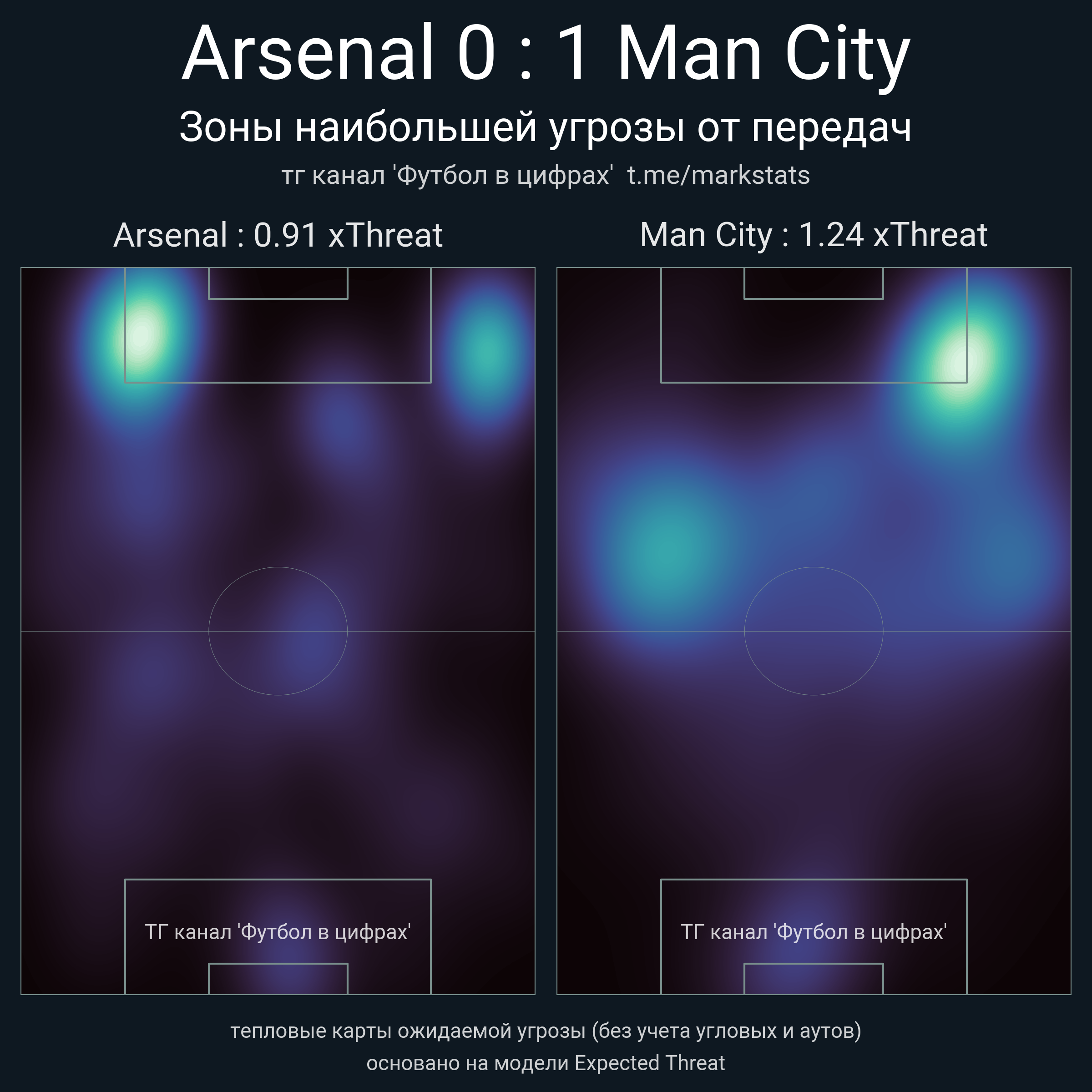 ▪ xThreat без учета угловых: 0.91 - 1.24