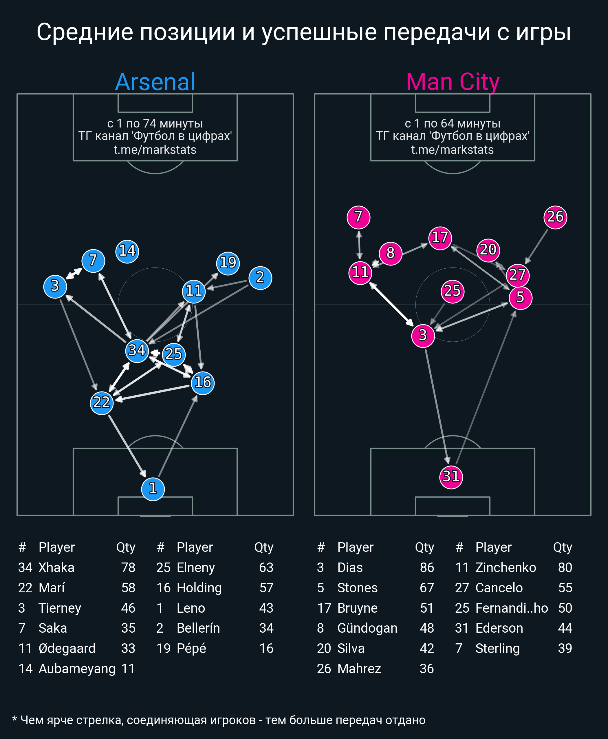 Футбол в цифрахСтатистика матча Arsenal - Man City