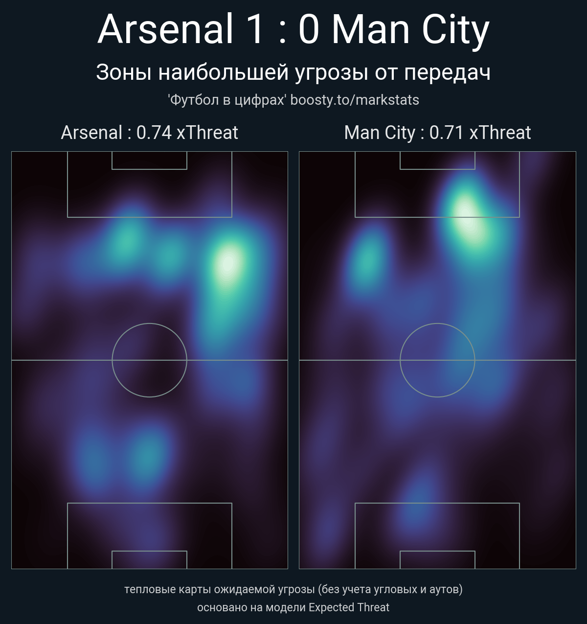 xThreat без учета угловых: 0.74 - 0.71