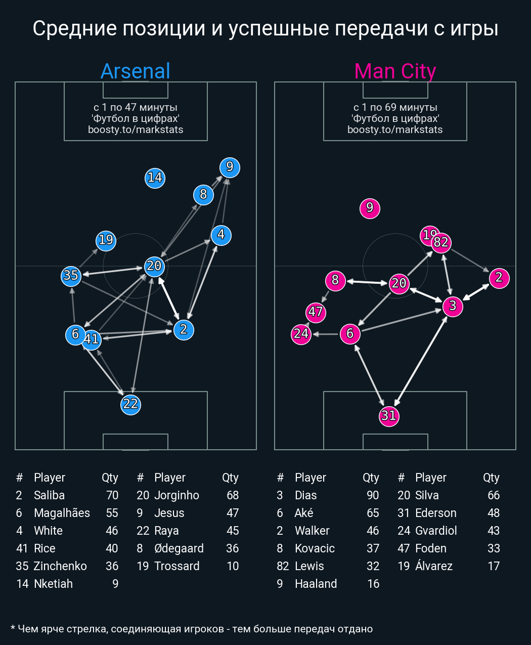 78 успешных передач из 91 попыток (2 с продвижением, 2 на трети соперника)