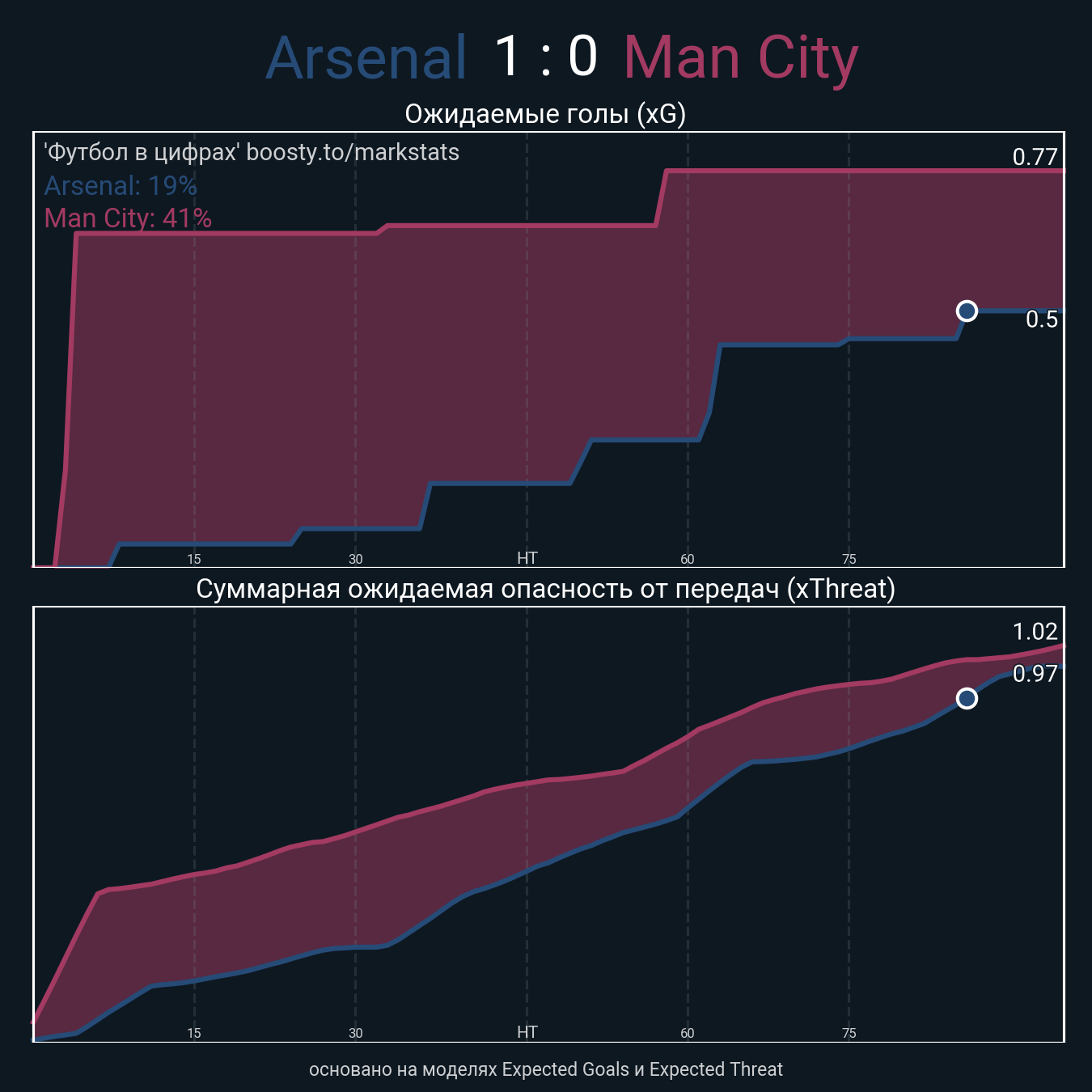 Ожидаемые голы (NPxG): 0.5 - 0.77