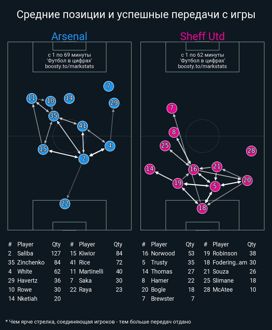 122 успешных передач из 127 попыток (9 с продвижением, 1 на трети соперника)