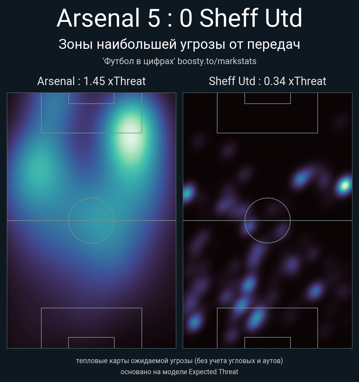 xThreat без учета угловых: 1.45 - 0.34
