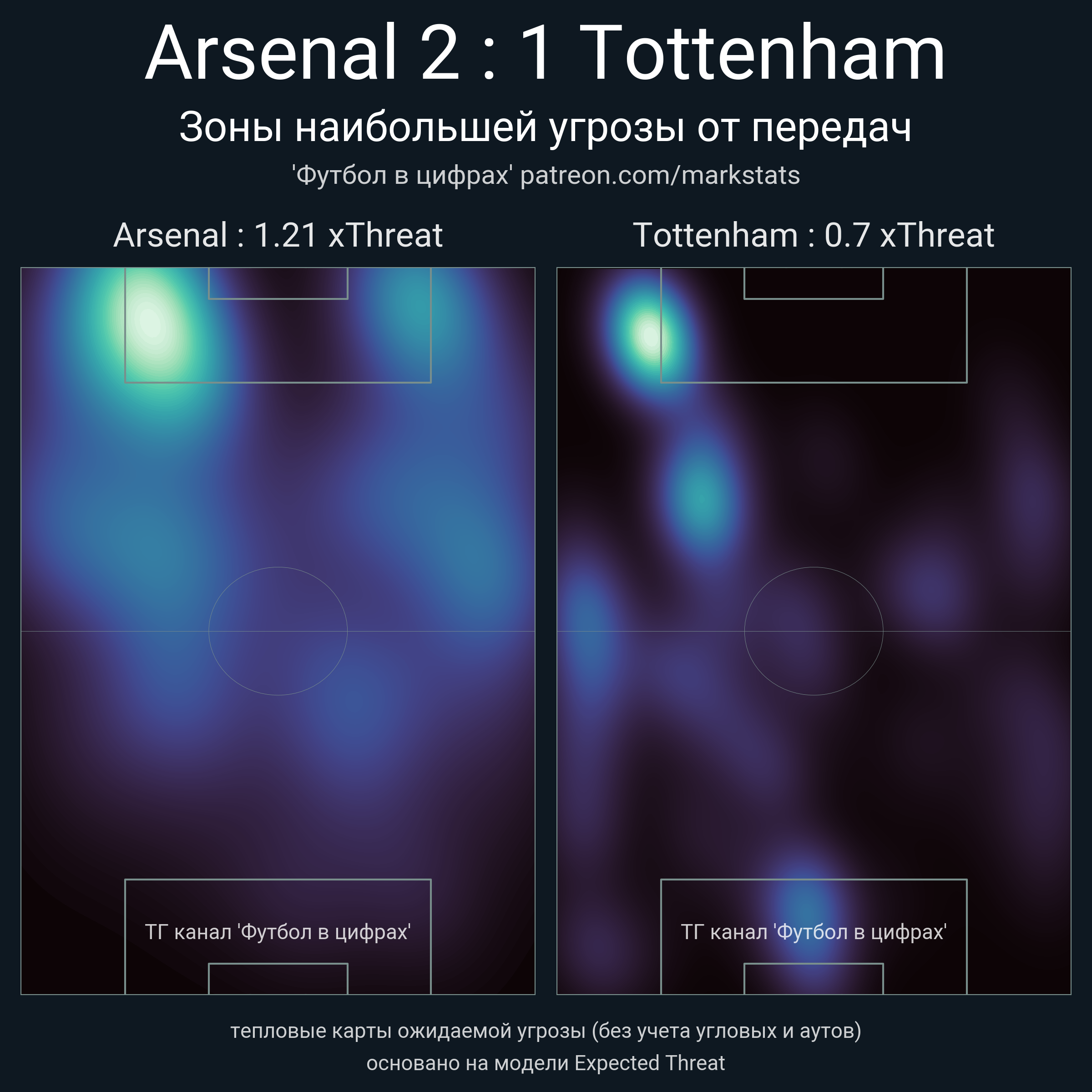 ▪ xThreat без учета угловых: 1.21 - 0.7