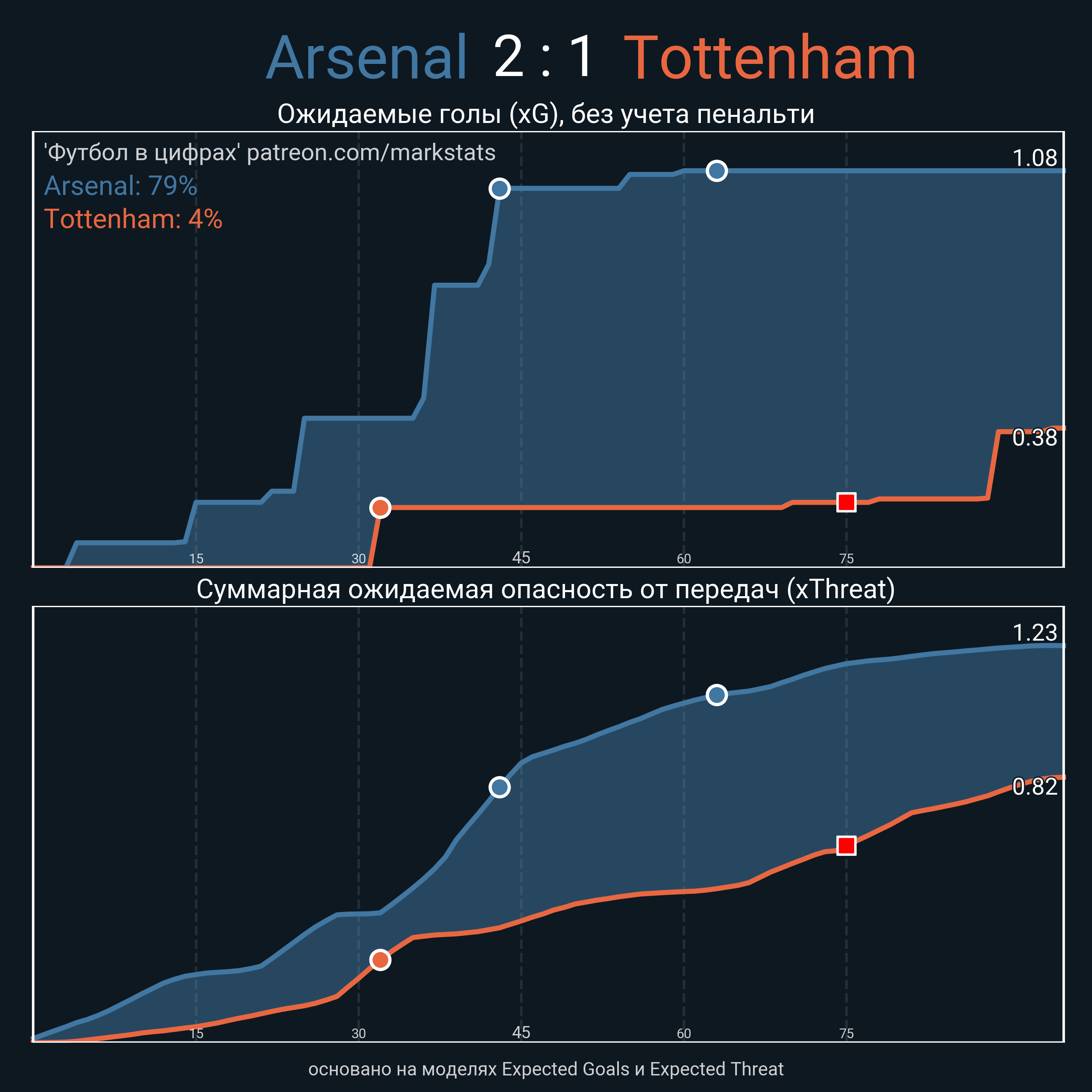 ▪ Ожидаемые голы (NPxG): 1.08 - 0.38