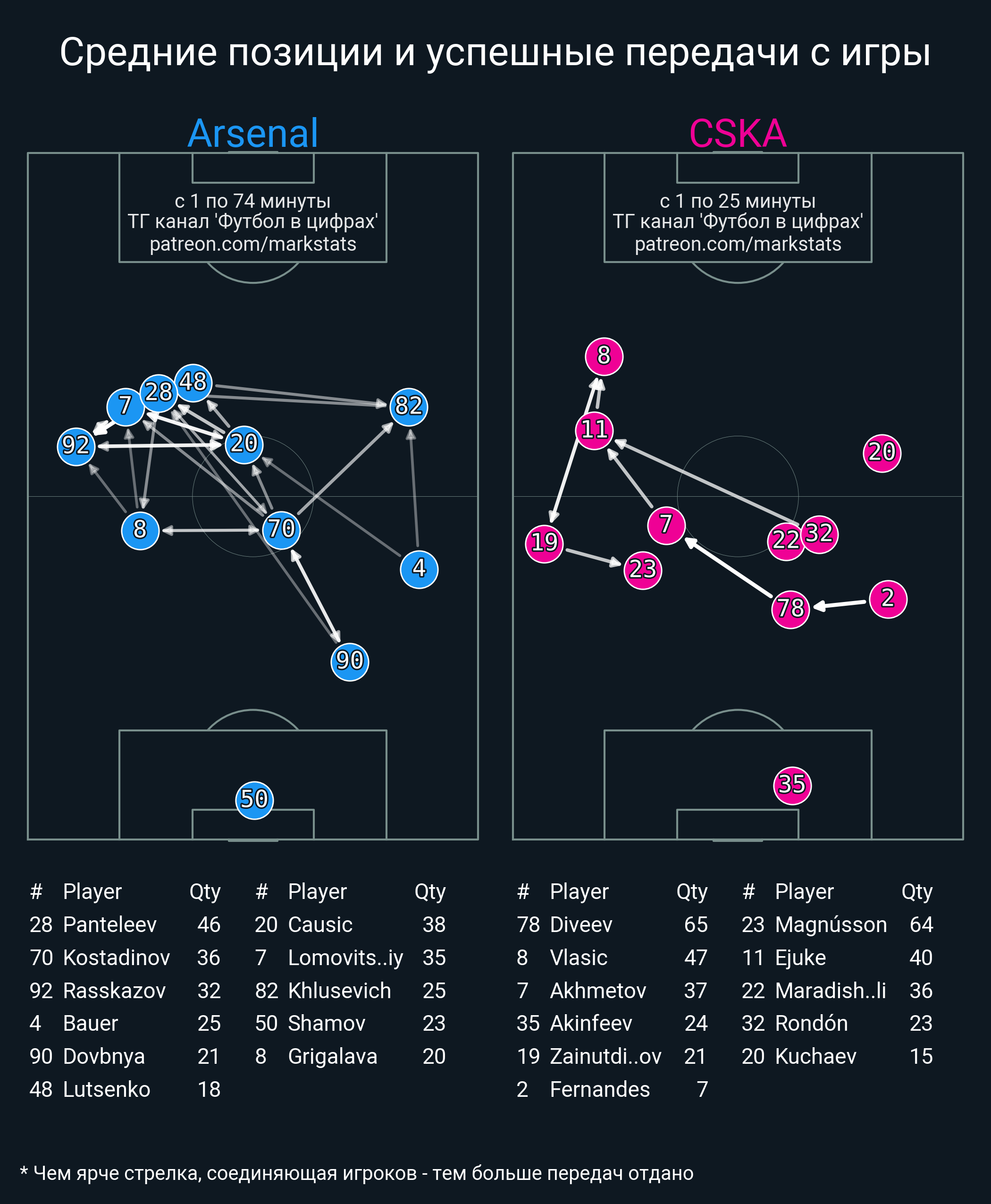 ▪ 35 успешных передач из 48 попыток (2 под удар, 5 с продвижением, 7 на трети соперника)