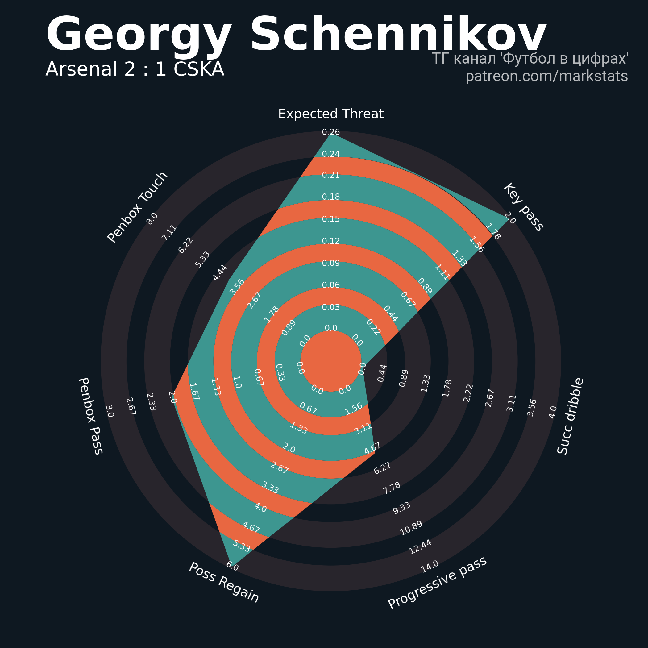 ▪ 0.26 очка xT (+0.01 со стандартов)