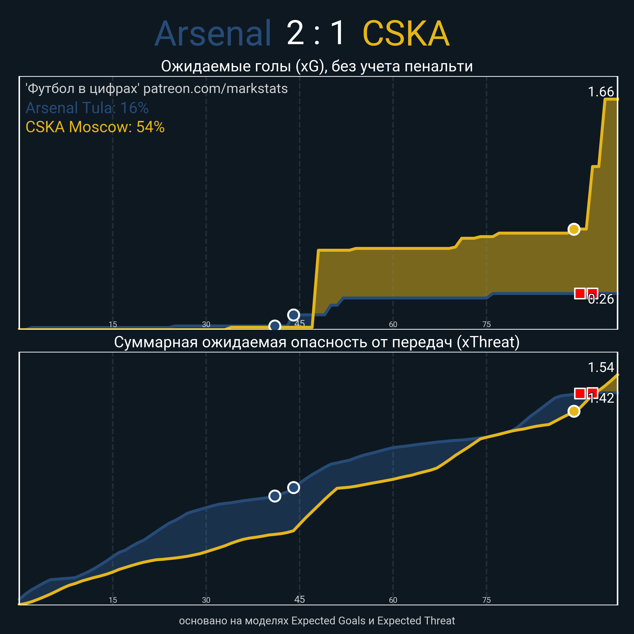 Футбол в цифрахСтатистика матча Arsenal Tula - CSKA Moscow