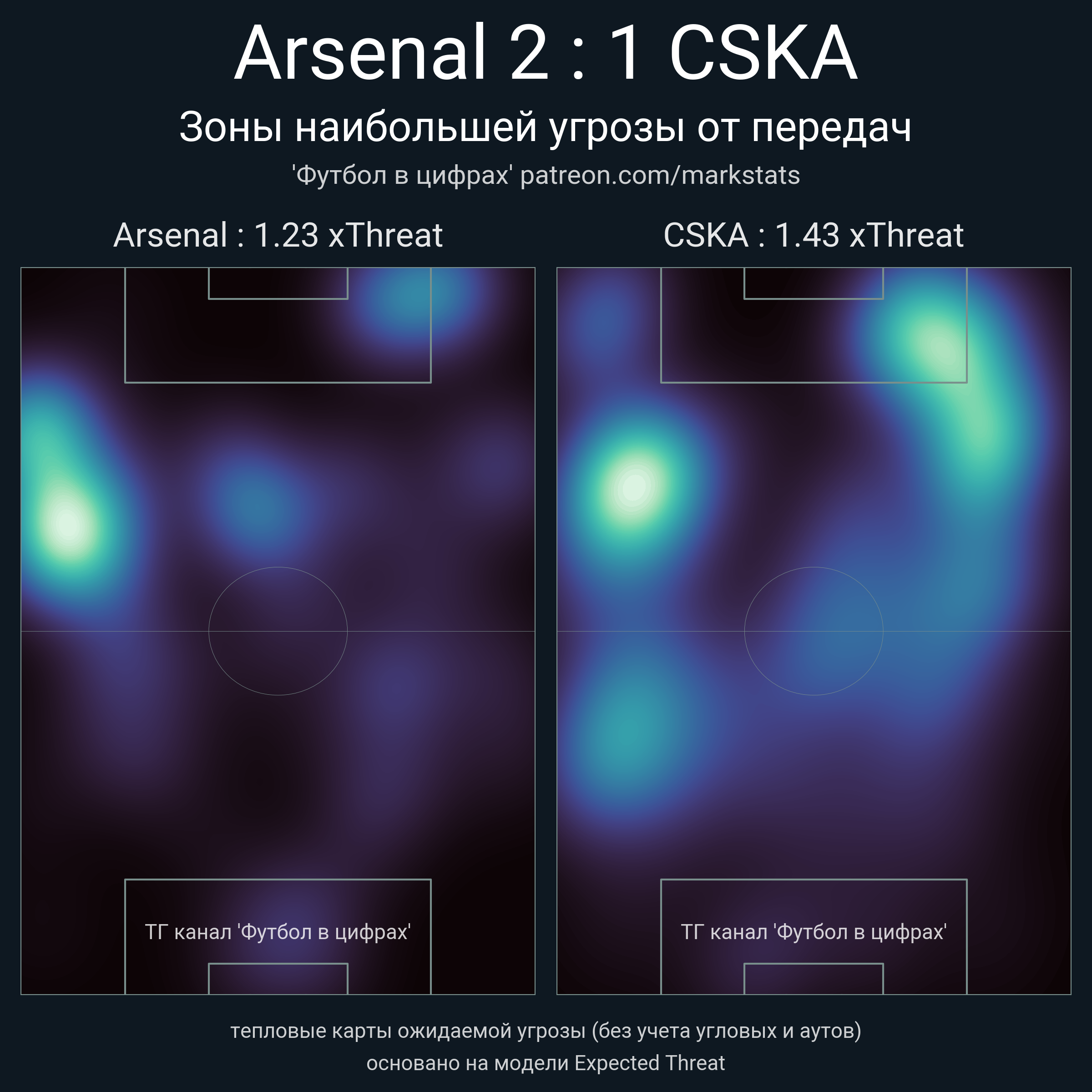 ▪ xThreat без учета угловых: 1.23 - 1.43