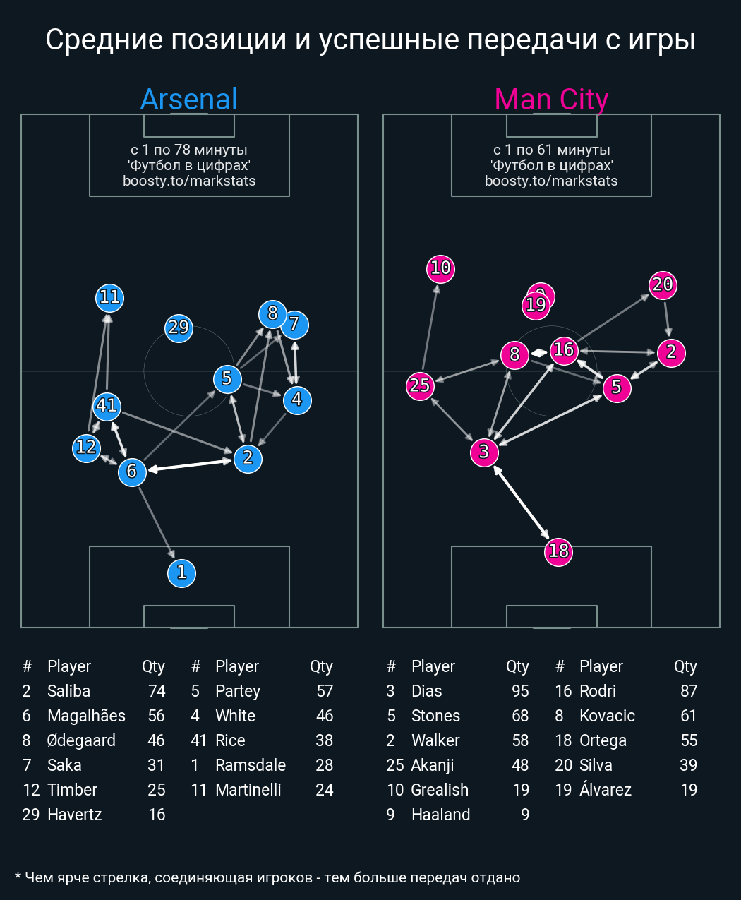 80 успешных передач из 87 попыток (2 с продвижением, 9 на трети соперника)