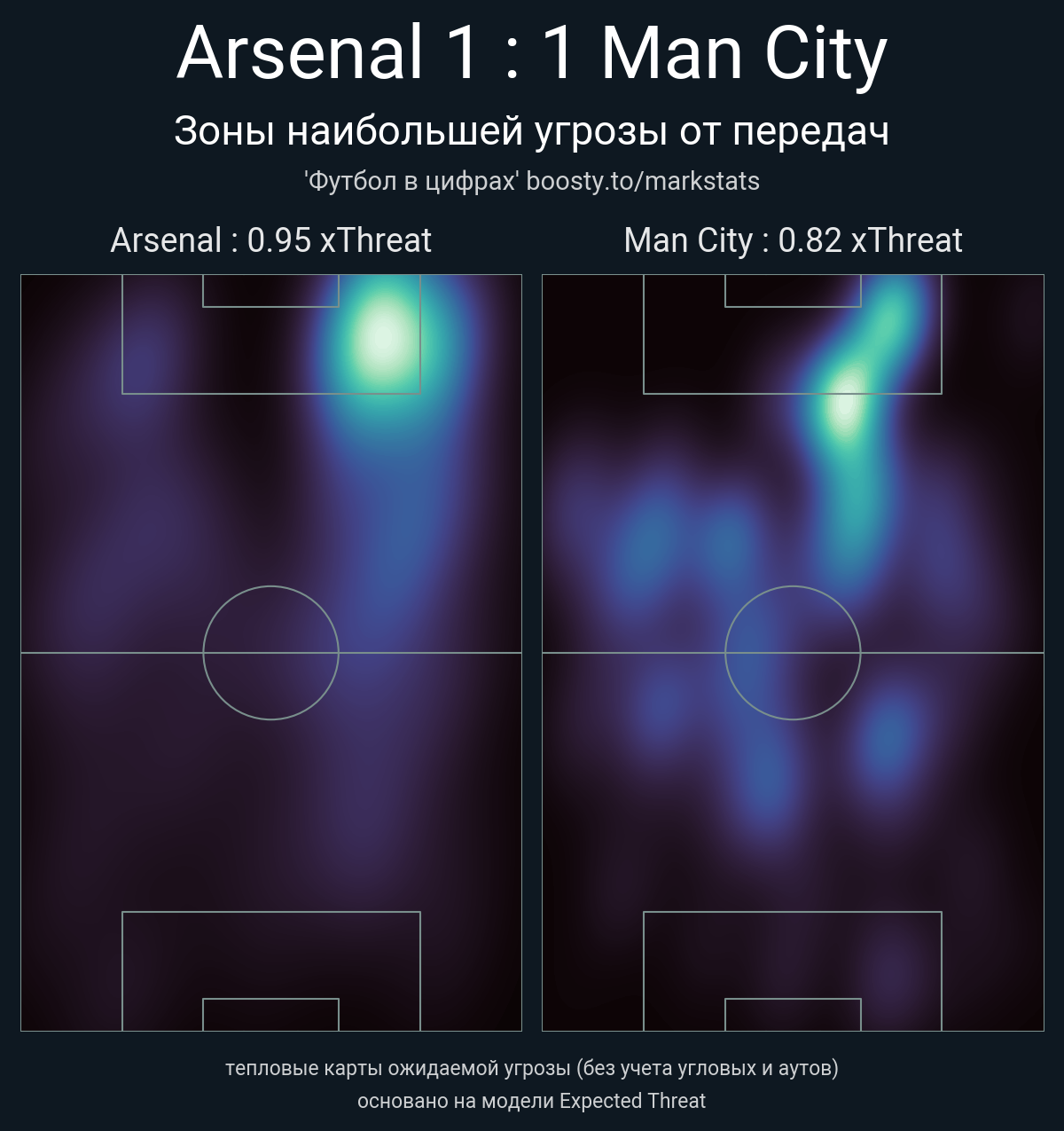 xThreat без учета угловых: 0.95 - 0.82