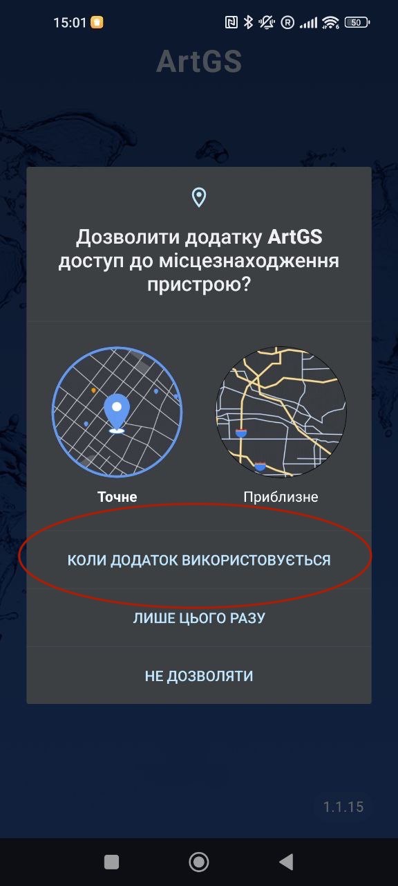 ArtGS AndroidDimaВстановлюємо додаток з сайту: ios.khortitsa.com.Після цього запускаємо додаток ArtGS.Дозволяємо використовувати геолокацію та камеру.Вводимо корпоративний логін та пароль і приступаємо до роботи.