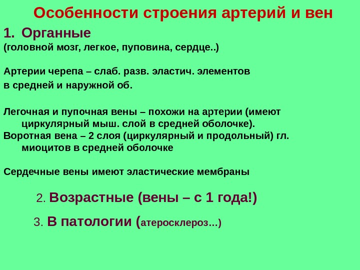 Артериальное особенности