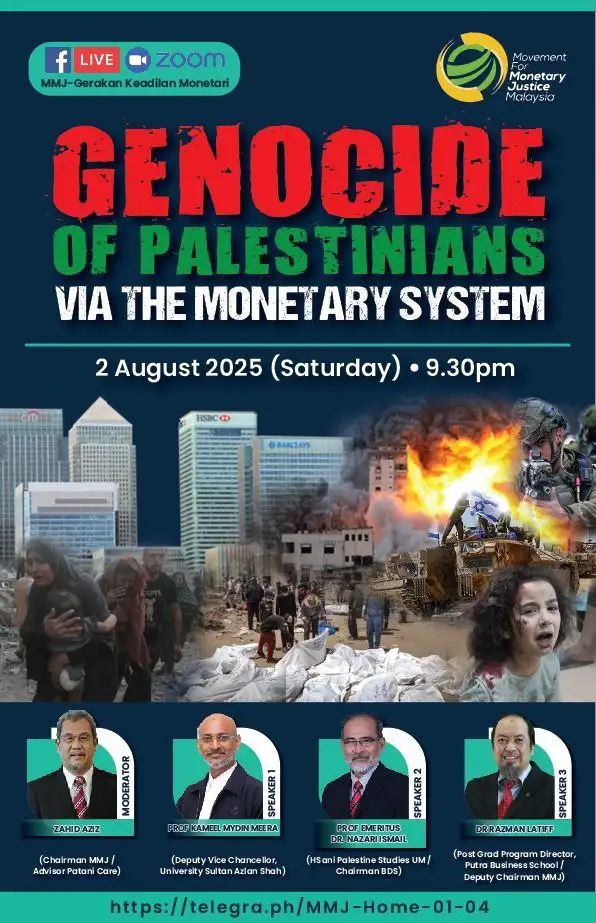 "The Monetary System as an Enabler for Israeli Genocide in Palestine- the Case for BDS." Presentation of Prof Nazari Ismail in MMJ's Genocide of Palestinians via the Monetary System. Zoom and FB Live on 2nd Aug 2025.