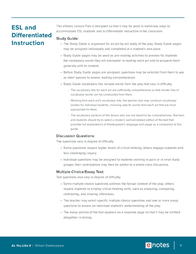 As You Like It: Suggested Essay Topics | SparkNotes