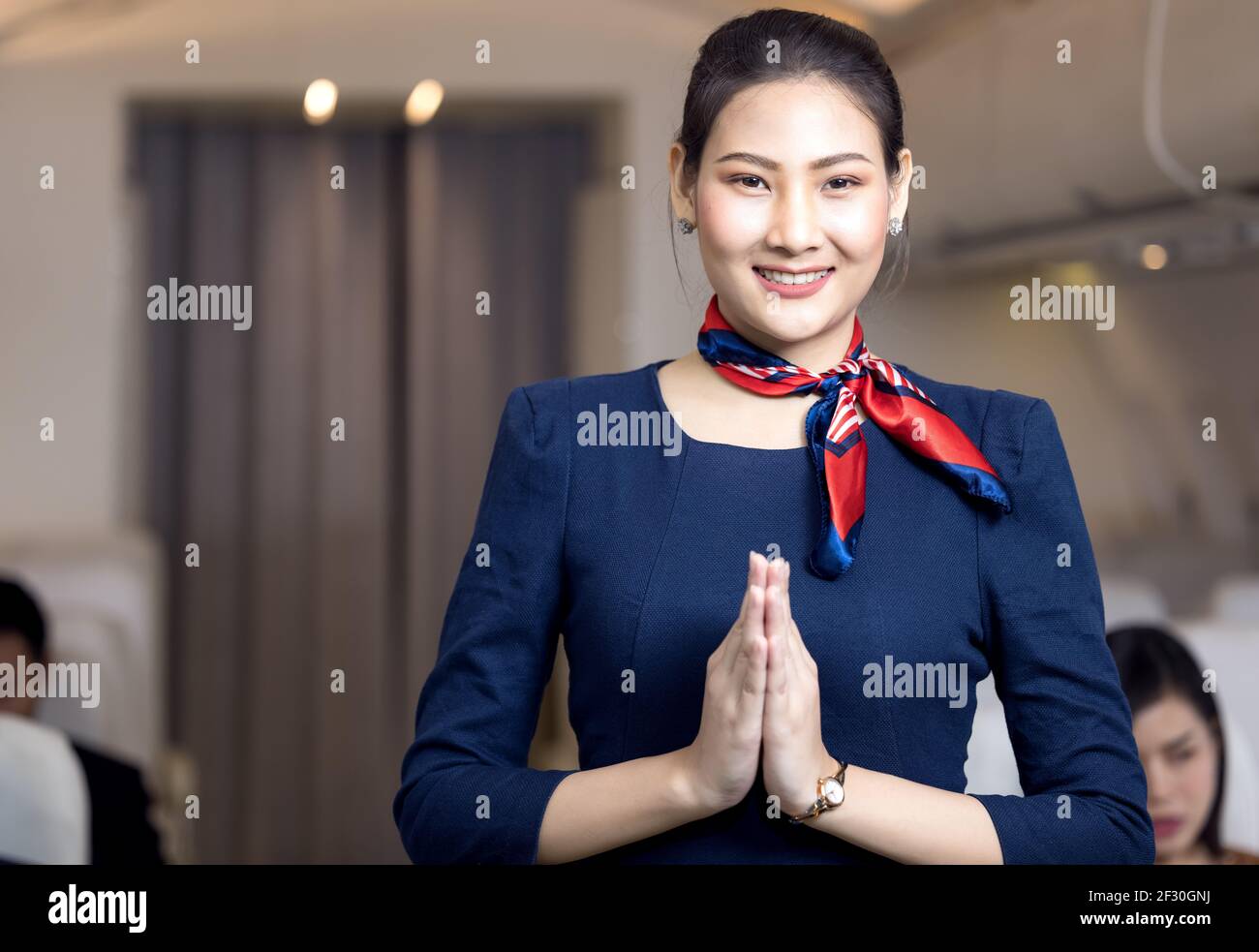 Asain Flight Attendant with long nails gives a HJ 110 photos