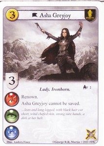 Asha Greyjoy, known as The Kraken's Daughter, is POV character in A Song of Ice and Fire . She is a member of House Greyjoy and is the daughter of Lord Balon Greyjoy by his wife, Alannys Harlaw, the elder sister of Theon Greyjoy, and the younger sister of the deceased Rodrik and Maron Greyjoy . She becomes a POV character in A Feast For Crows .