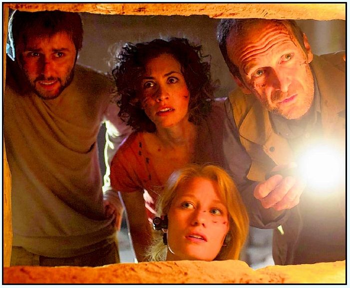 Storyline A team of U .S . archaeologists unearths an ancient pyramid buried deep beneath the Egyptian desert . As they search the pyramid's depths, they become hopelessly lost in its dark and endless catacombs . Searching for a way out, they become desperate to seek daylight again .