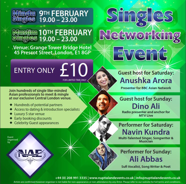 Asian Singles Parties & Speed Dating . We offer singles parties for Hindu and Sikh Asian Professionals with optional speed dating in London and Birmingham . Our events attract 100 to 200 guests, we have lots of hosts to look after our guests and we have simple ice breaking activities to ensure you meet lots of new people .