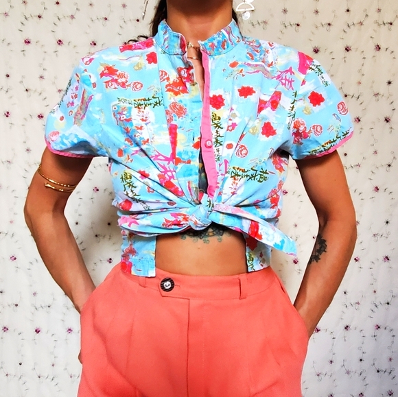 Vintage 90s Y2K does 70s Asian style cheongsam style . . .
