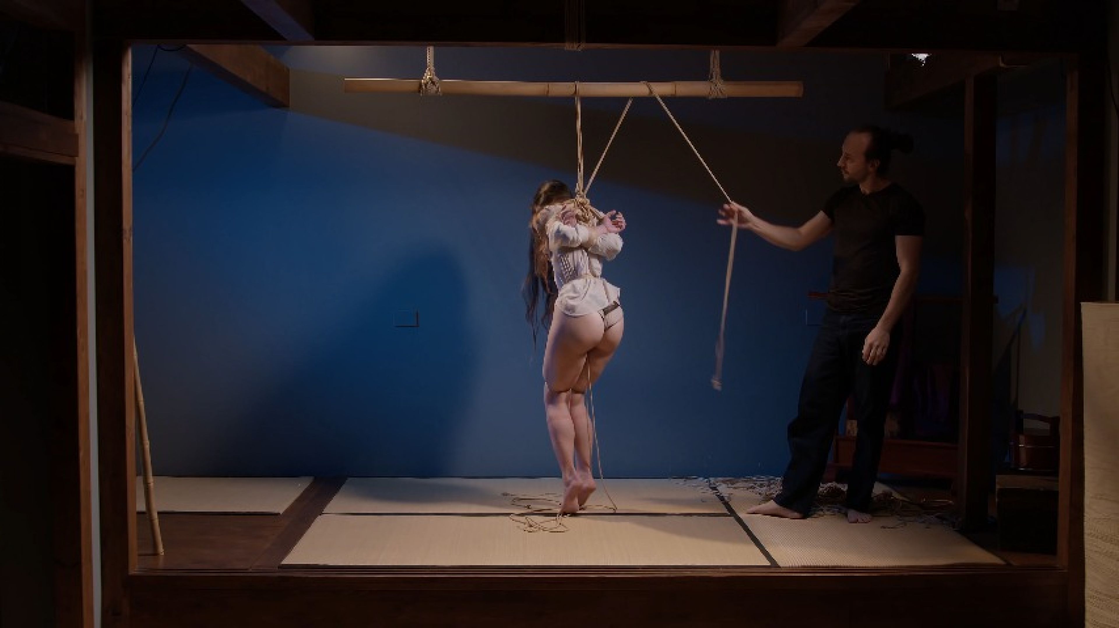 Asian babe in rope bondage scene