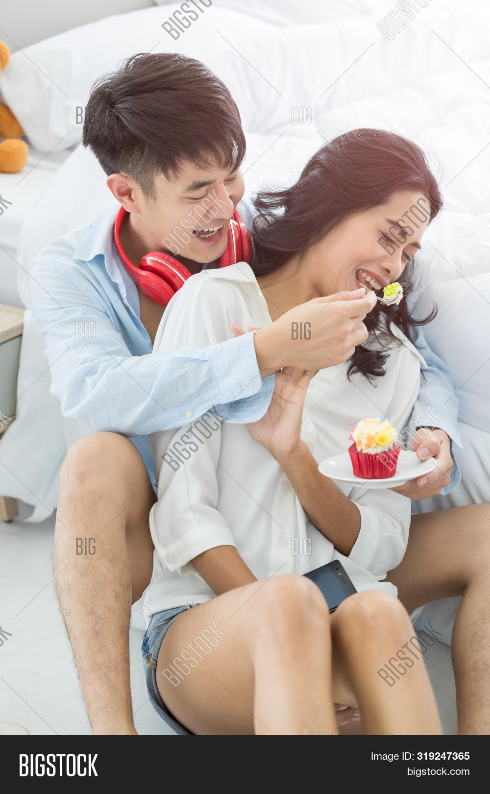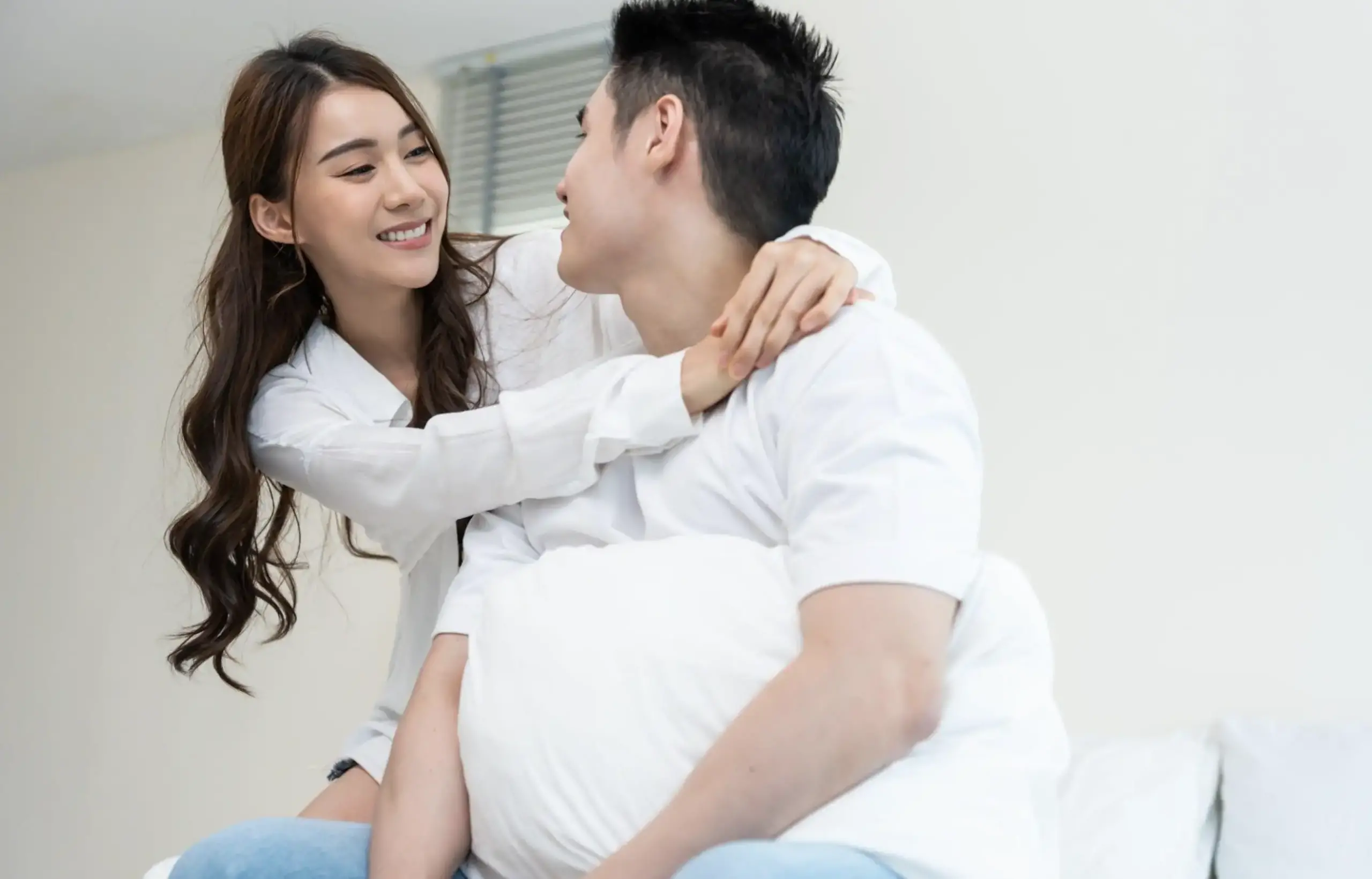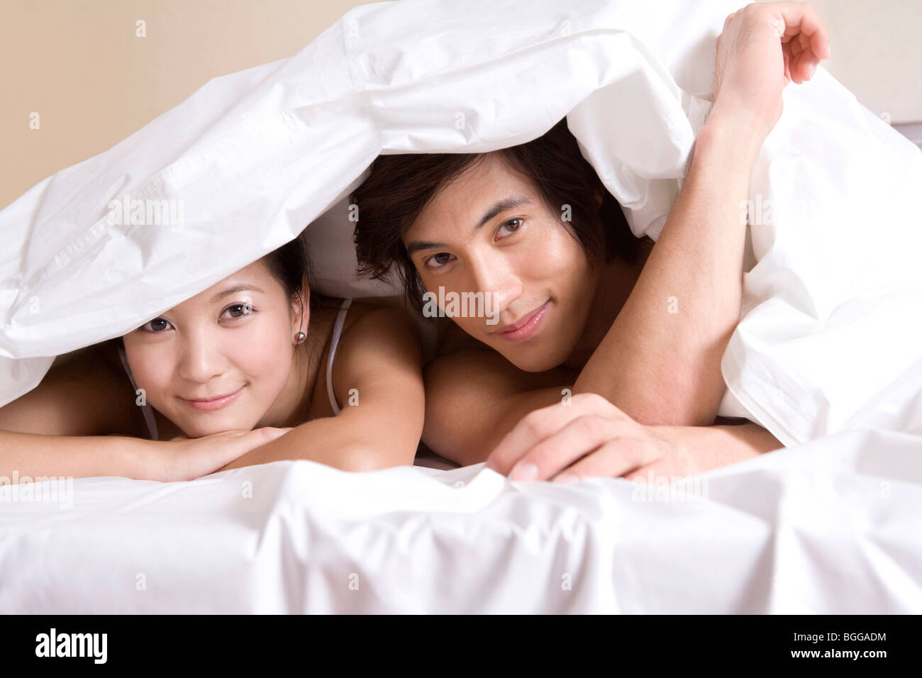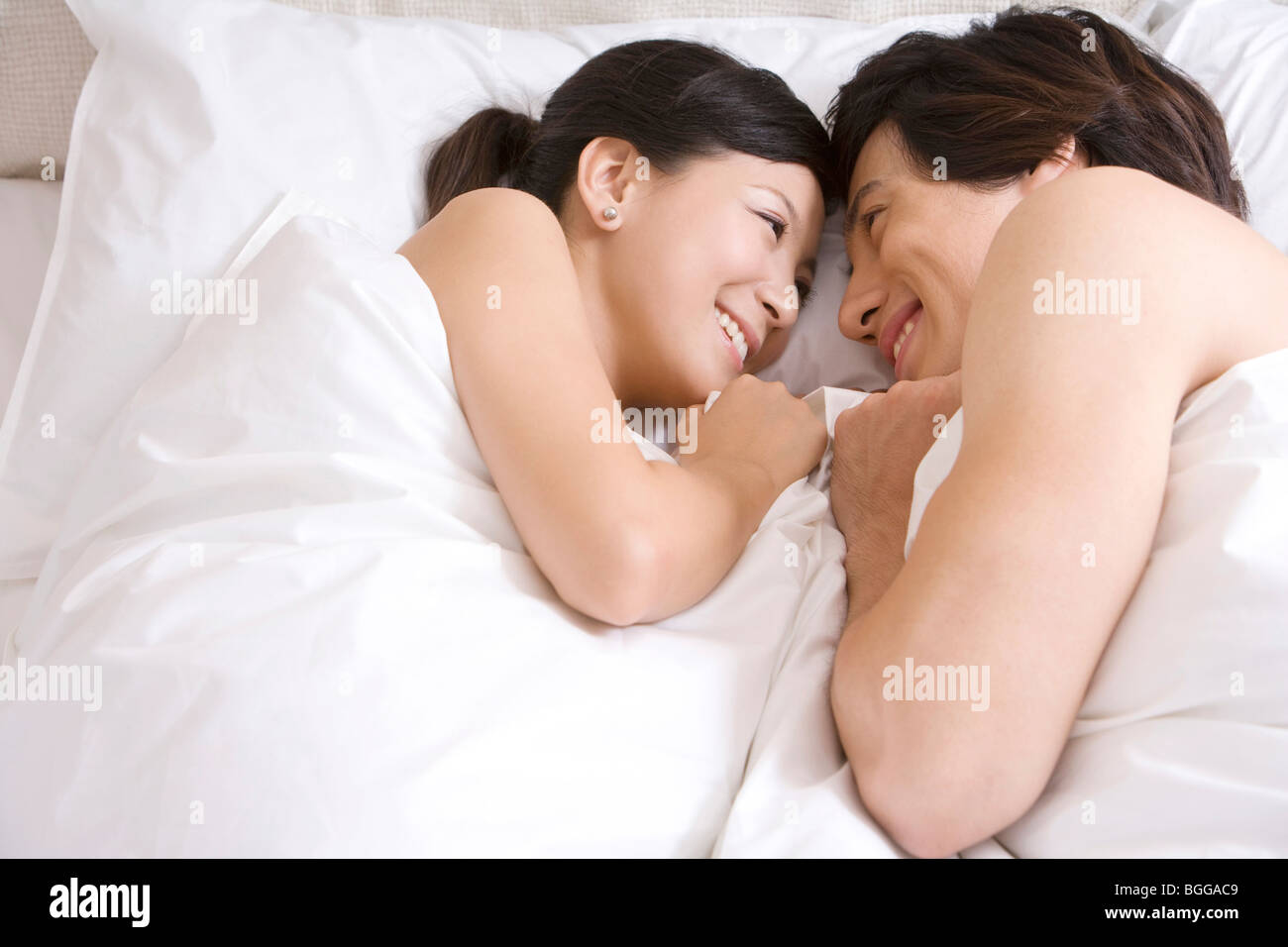 Asian couple are making love on daybed