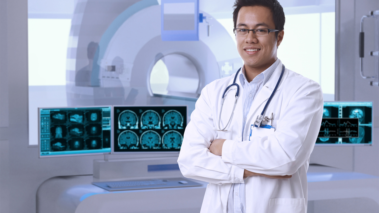 Asian doctor exam