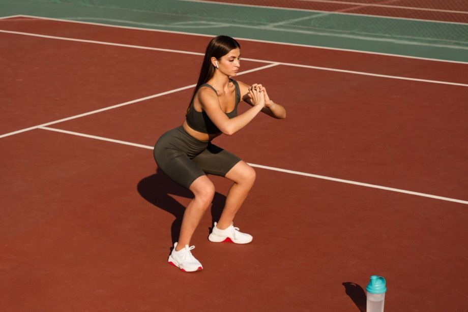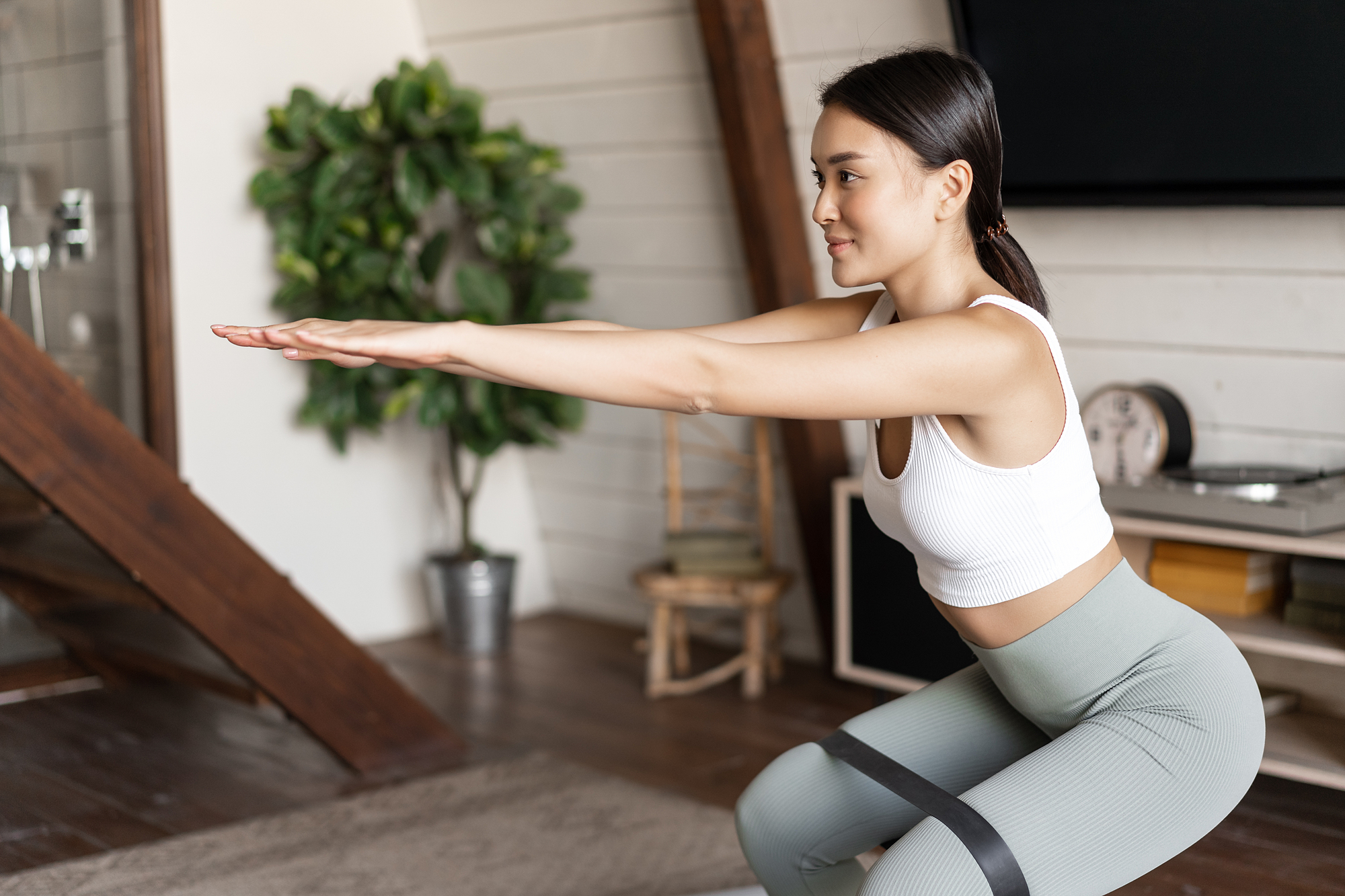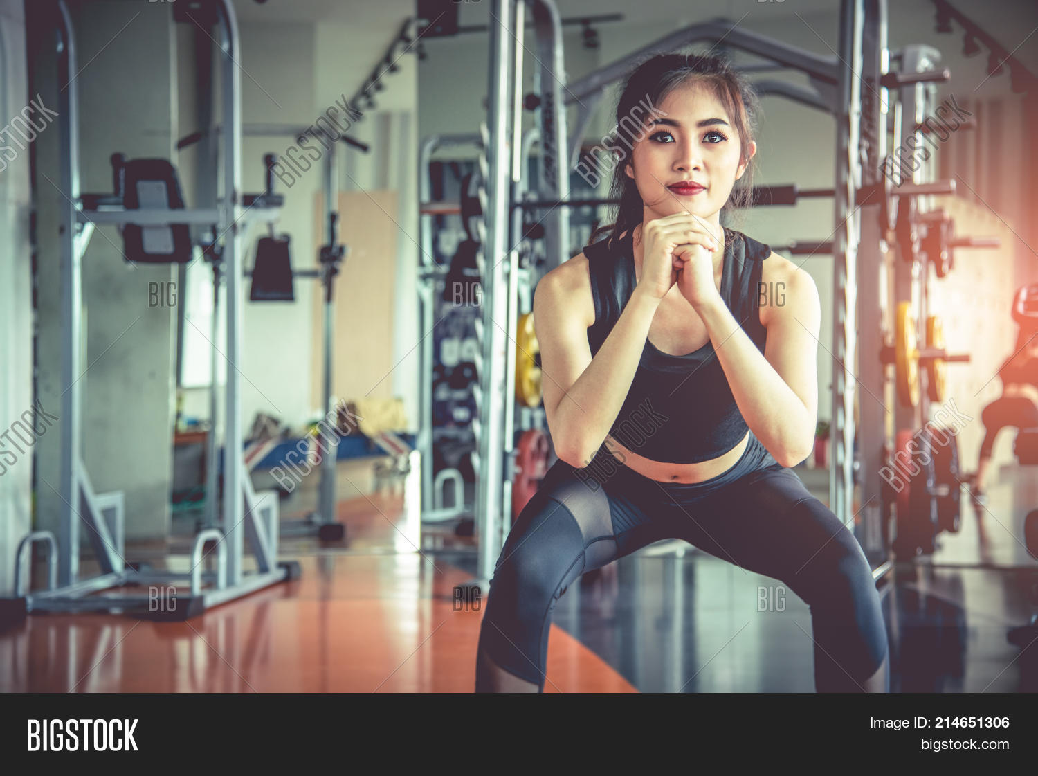 Asian girl squats to ### outside