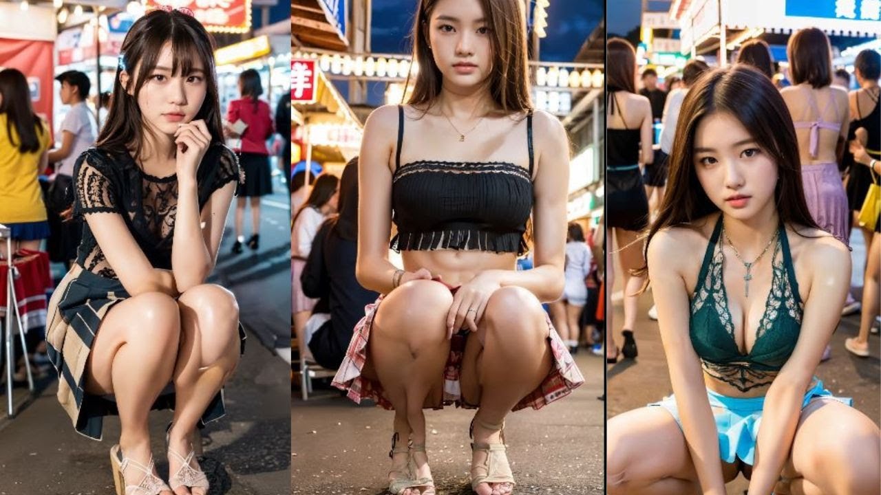 Asian girl squats to ### outside 117 photos