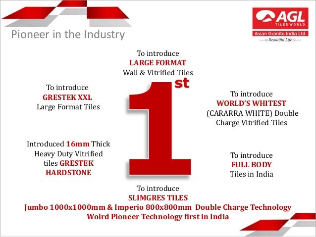 Established in the year 2000, Asian Granito India Ltd . has emerged as one of the top tile companies in India . AGL's leadership is marked by many successful challenges in its incessant pursuit of excellence .