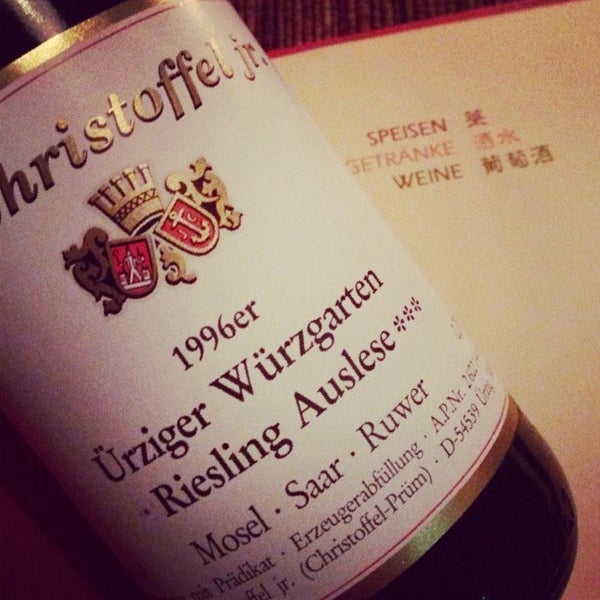 Not only BerlinΒ΄s hot spot for excellent Chinese food but also for one of the best Riesling wine lists in the city . Those who still think that Chinese knowledge of alcoholic drinks stops at plum wine should try quenching proprietor Jianhua WuΒ΄s hellishly hot ox tongue and tripe Fuqi Feipian with a dry, mineral Riesling . Especially the light elegance of the Riesling is a perfect match for . . .
