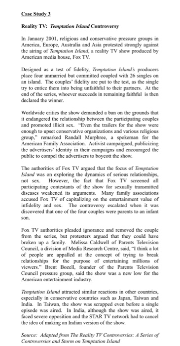 Temptation Island is an American reality television program broadcast on Fox and USA Network in which several couples agree to live with a group of singles of the opposite sex, in order to test the strength of their relationships . It's based on the Dutch TV-program Blind Vertrouwen (translated as Blind Faith) created by Endemol and has been adapted by different countries .