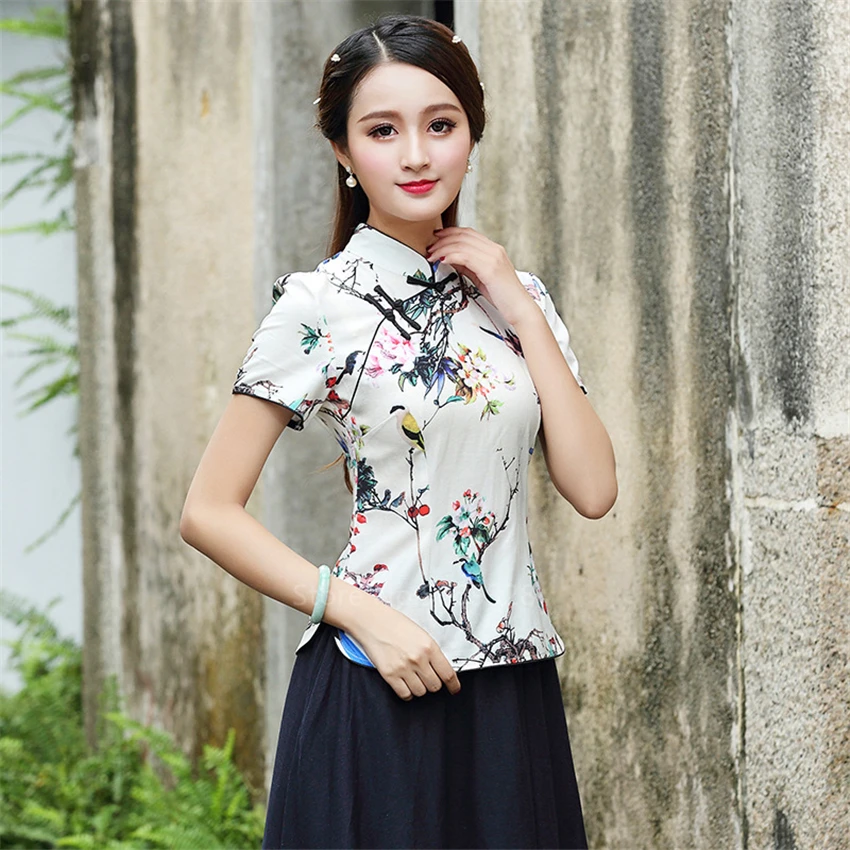 Women's Baroque Print Shirt Regular Fit Long Sleeve Button up Casual Blouse Top . 3 .9 out of 5 stars 495 . $24 .98 $ 24 . 98 . Get it as soon as Fri, Apr 9 . FREE Shipping on orders over $25 shipped by Amazon +10 Shanghai Story . Chinese Cheongsam Shirt Short Sleeve China Blouse for Women .
