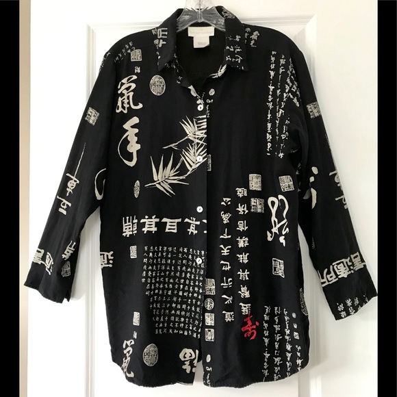 Citron Santa Monica Asian Inspired Lantern Print Blouse Jacket Black Size Large . $89 .00 . Free shipping . or Best Offer . Vintage Asian Oriental Women Silk Top Jacket Teal Gold NO SIZE . $45 .00 . $4 .00 shipping . or Best Offer . Norm Thompson Jacket Pink Silk Floral Embroidered Asian Sz Medium .