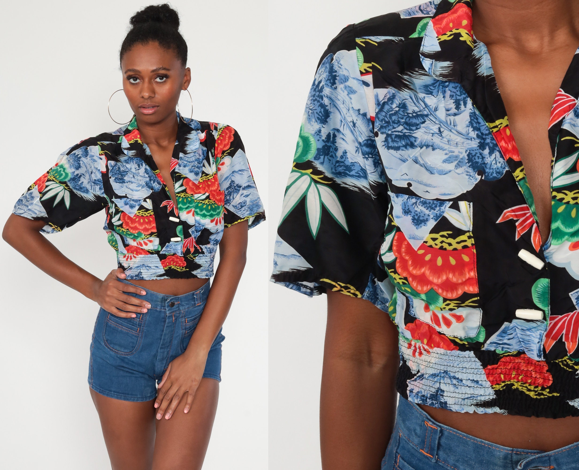 XS 60s Floral Print Asian Blouse ShopEyesOpen 5 out of 5 stars (243) $ 28 .00 . Add to Favorites Black Mesh Lace Floral Velvet Turtleneck Top Sheer lovedeluxeshopx 5 out of 5 stars (37) $ 21 .99 . Only 1 available and it's in 1 person's cart . Add to Favorites Blue Floral Tie-Waist Asian-Style Top . . .