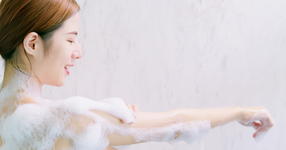 Asian takes a shower