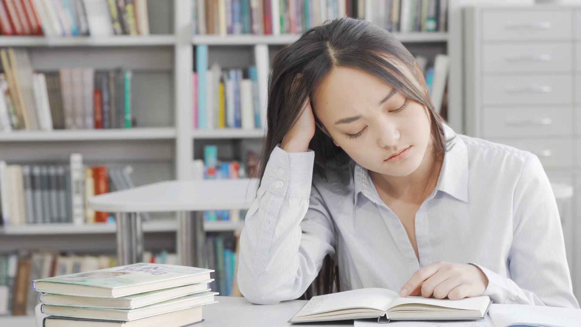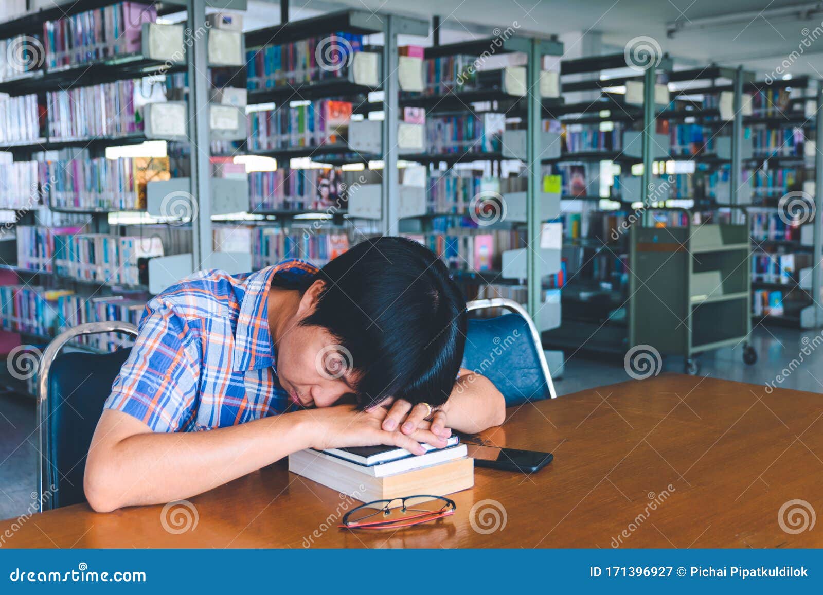 Asians Sleeping In The Library
