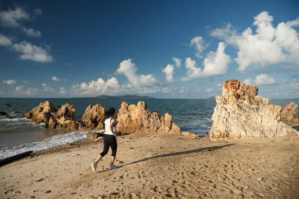Asiatique inspectée à la plage