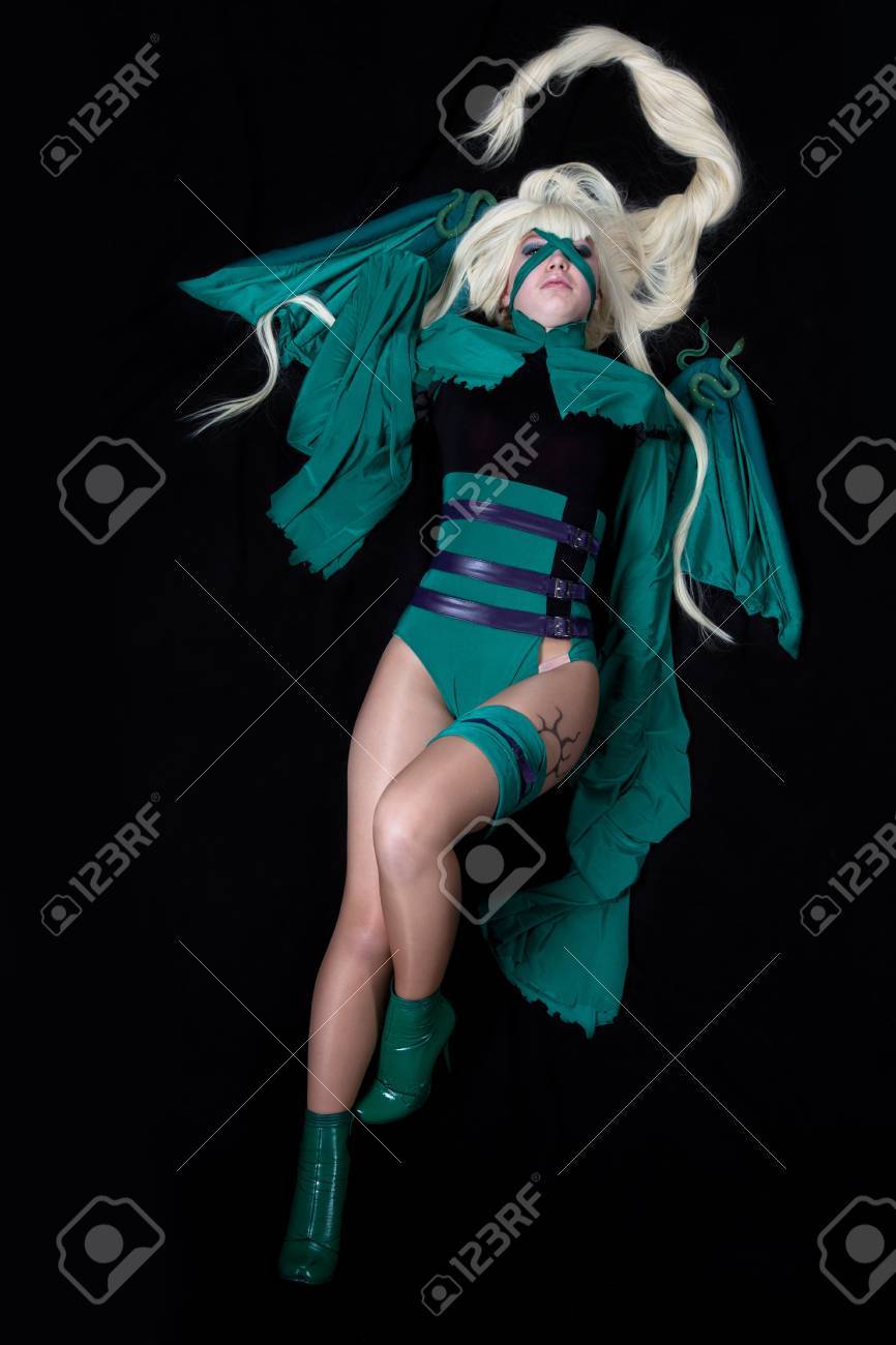 Asiatische Puppe beim Cosplay