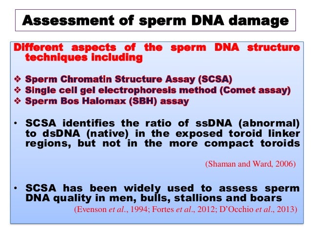 In a study performed using the alkaline COMET assay, NT-condensed and NT-decondensed methods, Irvine et al . found a significant negative correlation between sperm DNA damage and semen quality, especially in sperm count .