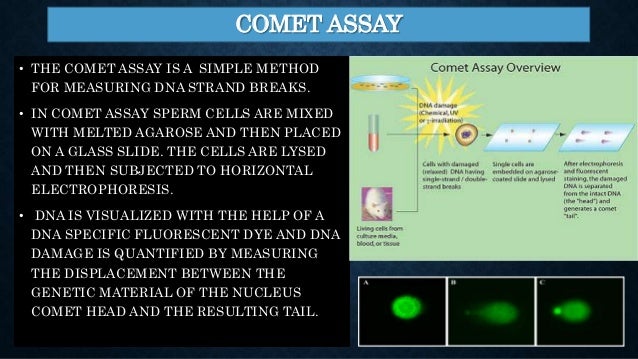 A comet assay can determine the degree of DNA fragmentation in sperm cells . The degree of DNA fragmentation has been associated with outcomes of in vitro fertilization . The comet has been modified for use with sperm cells as a tool for male infertility diagnosis