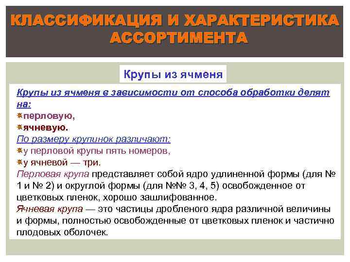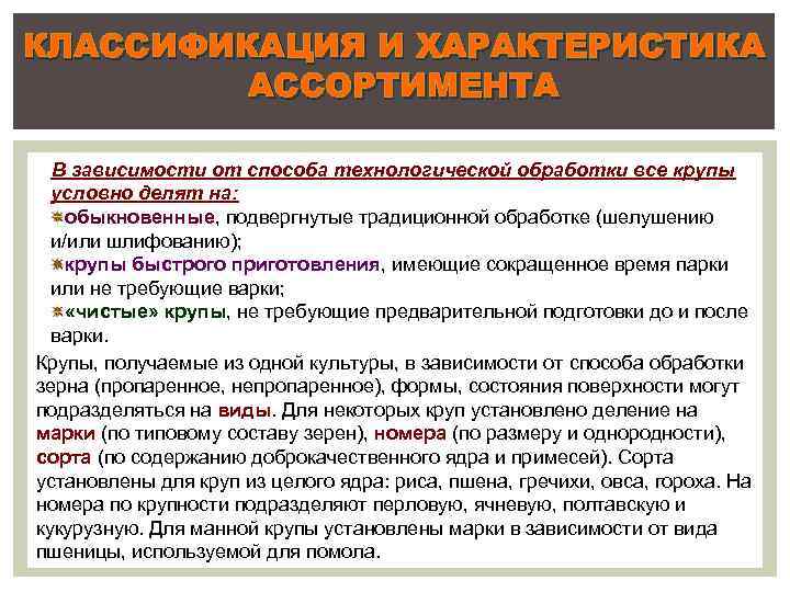 Ассортимент и характеристика круп
