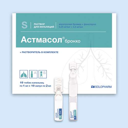 Астмасол-СОЛОфарм (ипратропия бромид + фенотерол; раствор для ингаляций) . Комбинированное противоастматическое средство для симптоматического лечения обструктивных заболеваний дыхательных путей .